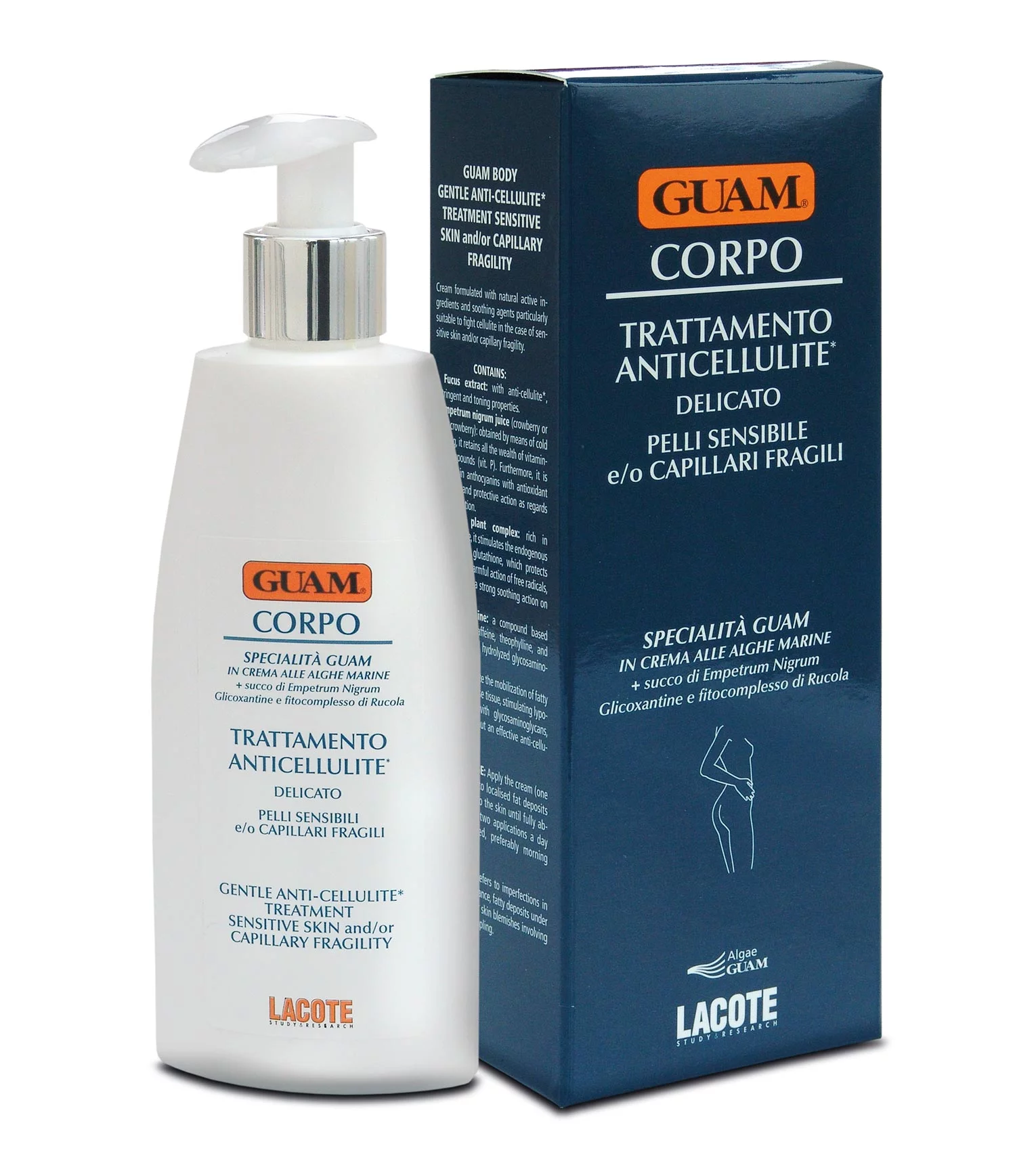 Спеціально створена формула крему GUAM Specialistica дієва для чутливої шкіри та / або шкіри з тендітними капілярами. Містить активний натуральний екстракт водоростей GUAM, а також заспокійливий комплекс рослинних екстрактів, які мають властивості вирівнювати шкіряний рельєф і повертати шкірі еластичність і пружність.