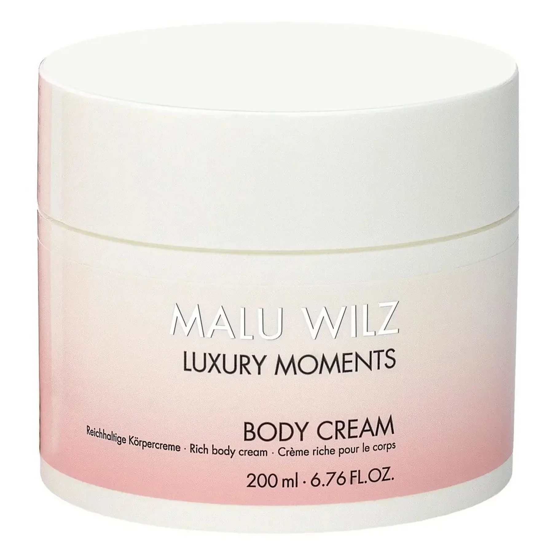 Крем для тіла Malu Willz Luxury Moments Body Cream - насичений крем для тіла для інтенсивно зволоженої шкіри. Крем миттєво вбирається, не липкий і не жирний. Ніжна текстура залишає шкіру надзвичайно м'якою та оксамитово гладенькою на тривалий час. Ідеальне поєднання цінних олій забезпечує шкірі інтенсивний, заспокійливий догляд.