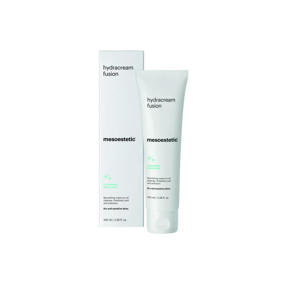 Засіб для вмивання не тільки ефективно очищає, а й живить, зволожує шкіру та поліпшує її захисні властивості. Mesoestetic Cleansing Solutions Hydracream Fusion — крем-олія очищувальна рекомендована для сухої та чутливої шкіри. Продукт може використовуватися в зоні навколо очей та дозволений за наявності куперозу.