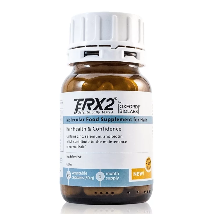 TRX2® активує і стимулює калій-іонні канали в волосяних фолікулах, забезпечуючи їх додатковими поживними речовинами для росту волосся. TRX2® – це молекулярна харчова добавка для волосся, яка містить комплекс калію, Carnipure® тартрат (L-карнітин тартрат), BCAA (амінокислоти з розгалуженим ланцюгом), нікотинамід і необхідні поживні речовини. TRX2® використовується для підтримки нормального здорового росту волосся у чоловіків і жінок.