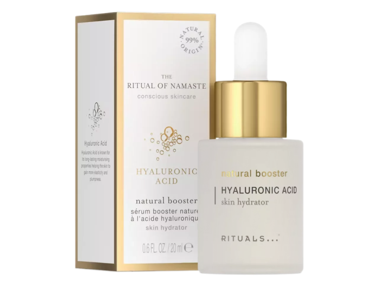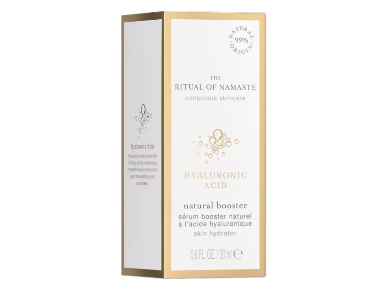 Негайно зволожите ніжну шкіру обличчя та шиї, щоб підвищити пружність і зробити її м’якою. Натуральний бустер з гіалуроновою кислотою Ritual of Namaste — це легкий і концентрований продукт, який допомагає відновити природний баланс вологи шкіри та мінімізувати появу тонких зморшків.