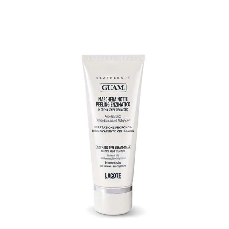 Нічна ензимна пілинг-маска для обличчя GUAM SEATHERAPY має відновлювальну дію, яка проявляє себе під час вашого сну вночі. Після пробудження ваша шкіра стає більш свіжою, добре зволоженою, сяйнистою та виглядає молодшою. Засіб забезпечує делікатну ензимну ексфоліацію, яка допомагає налагодити процес нормального відновлення клітин шкіри, котрий часто може уповільнюватися з віком. Делікатне відлущення шкіри сприяє відновленню її тонусу та сяяння. Завдяки дії активних компонентів маска відновлює захисний бар’єр шкіри та сприяє її зволоженню, допомагає зменшити шорсткість шкіри. Маска залишає приємне відчуття відновлення та свіжості на шкірі.