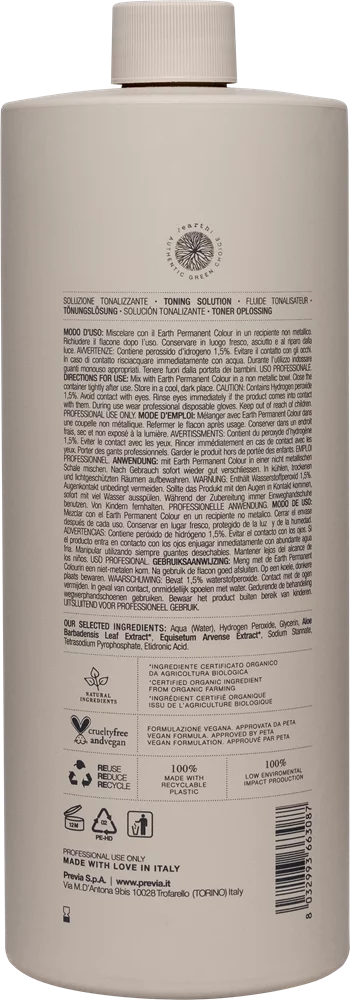 Natural Haircare Previa Earth Toning Solution 5VOL 1.5%. Проявник для фарби. У поєднанні з фарбами для волосся від Previa Earth допомагає створити відтінки, які ідеально підходять для покриття першого сивого волосся.