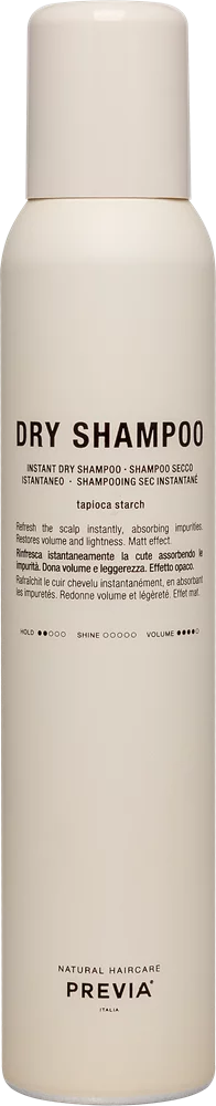 Сухий шампунь PREVIA STYLE&FINISH - ідеальний вибір для швидкого оновлення зачіски між миттям голови. Він ефективно поглинає себум, забруднення і залишки засобів для укладки, даруючи волоссю свіжість, об'єм і легкість. Продукт підходить для всіх типів волосся.
