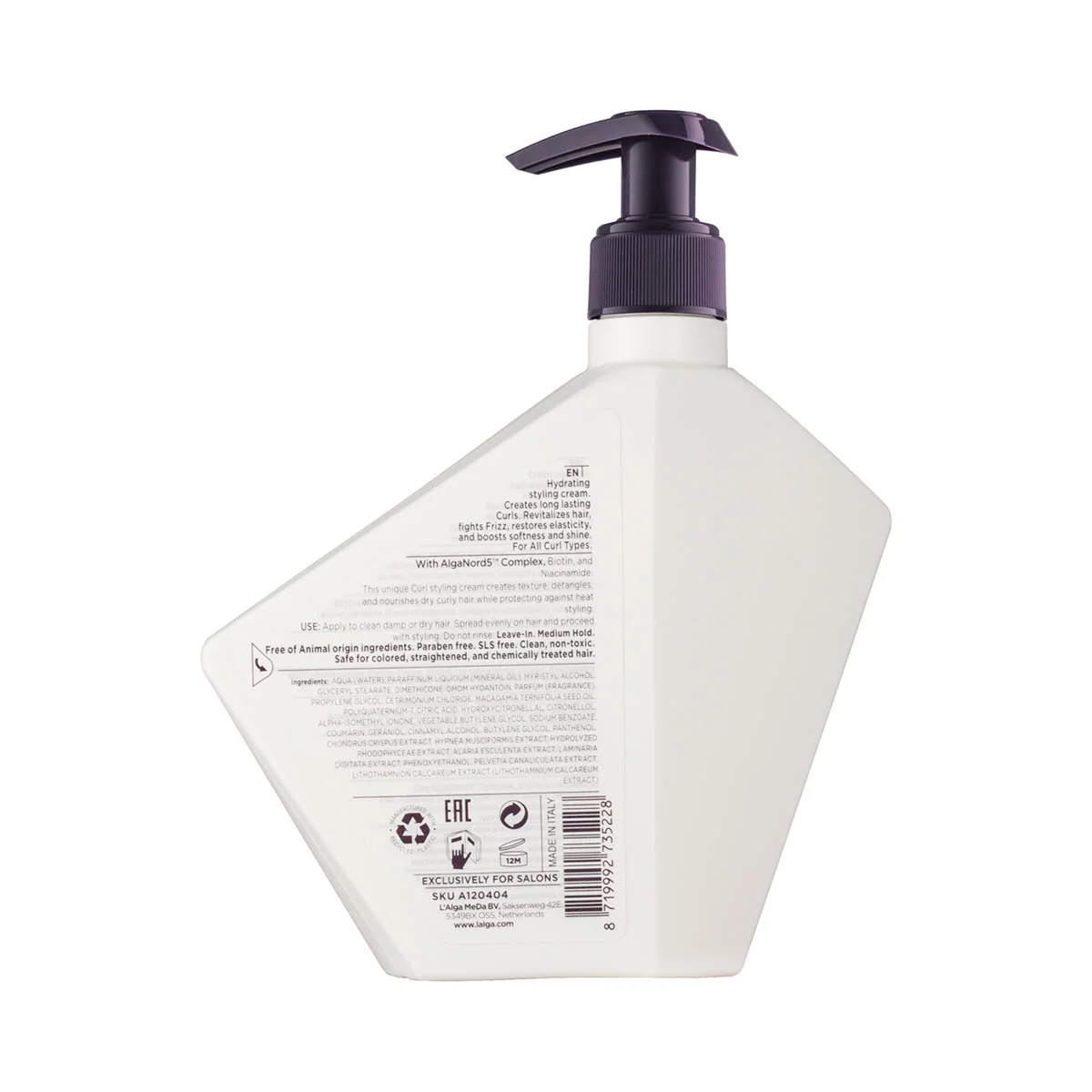 Увлажняющий крем для укладки средней фиксации. Создает локоны и сохраняет их форму на длительное время. Ревитализирует и устраняет пушистость, восстанавливает эластичность, повышает мягкость и усиливает блеск всех типов вьющихся волос. Благодаря формуле, обогащенной комплексом AlgaNord5™, биотином и ниацинамидом, этот уникальный крем распутывает и питает сухие вьющиеся волосы, подчеркивает текстуру и обеспечивает защиту от повреждений во время горячей укладки.