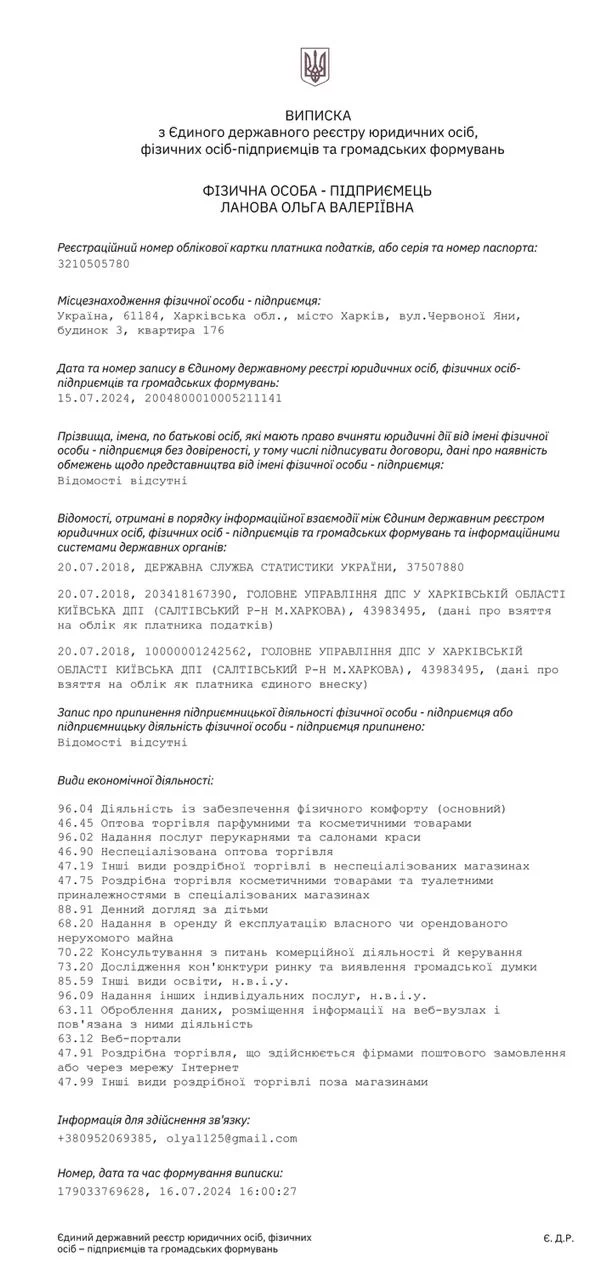 Получатель: ФОП Ланова Ольга Валерьевна ИНН(ЕДРПОУ): 3210505780