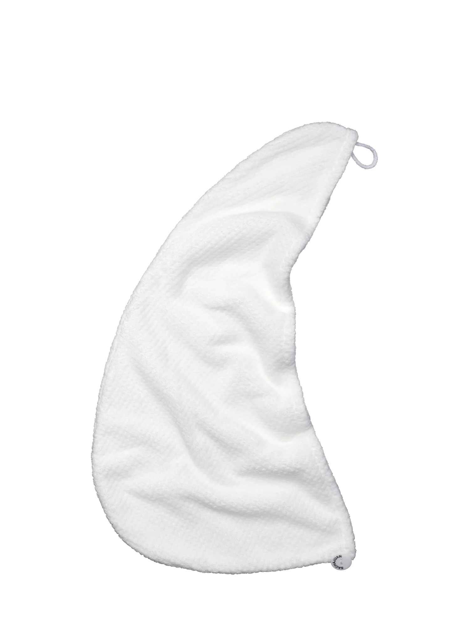 Способ применения: Наклоните голову вниз и наденьте полотенце SachaJuan так, чтобы пуговица была на затылке. Распределите локоны внутри полотенца и нежно закрутите его в спирали. Зафиксируйте полотенце, соединив петельку на его конце с пуговицей на затылке.