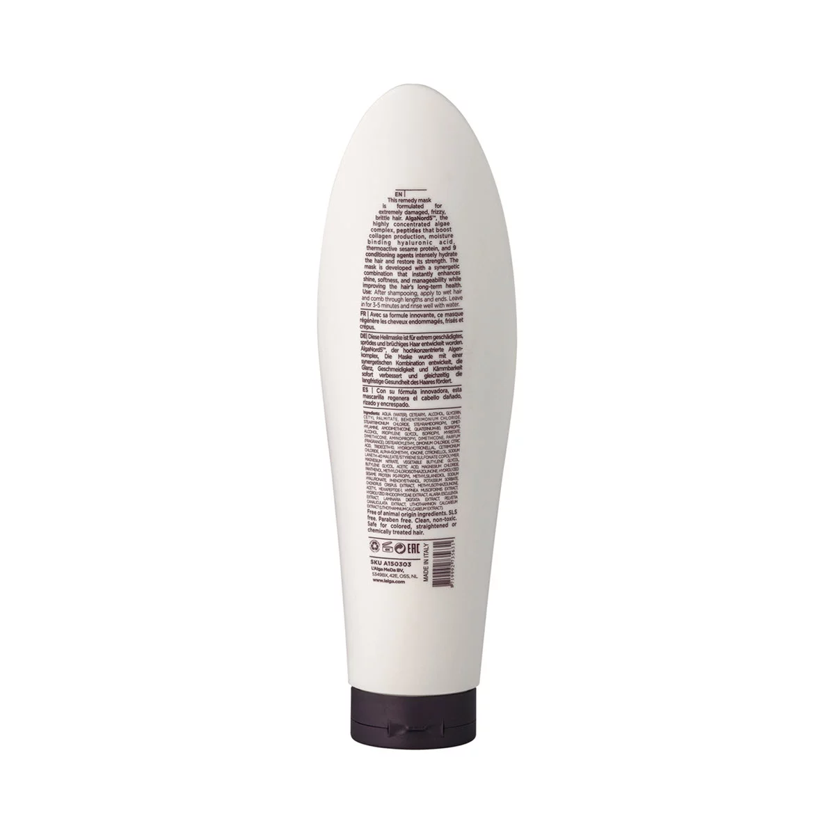 Восстановительная маска, разработанная специально для очень поврежденных, пушистых, ломких волос. Высококонцентрированный комплекс AlgaNord5™, пептиды, стимулирующие выработку коллагена, гиалуроновую кислоту с влагосвязывающими свойствами, термо активный кунжутный протеин и 9 кондиционирующих веществ интенсивно увлажняют волосы и возвращают ему силу.