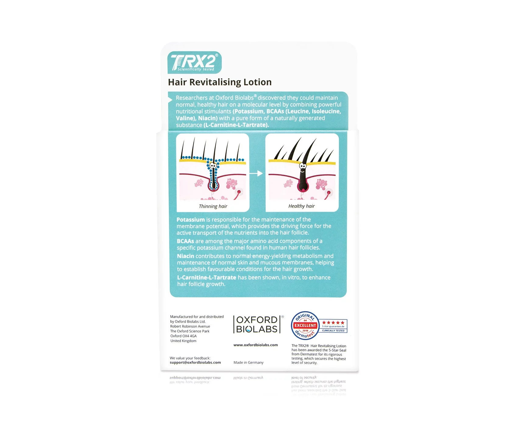 Лосьйон TRX2® створено для відновлення волосяних фолікулів та живлення рідкого волосся. Основою TRX2® Лосьйону є та сама ефективна формула, що використовується у TRX2® Молекулярній харчовій добавці для волосся.