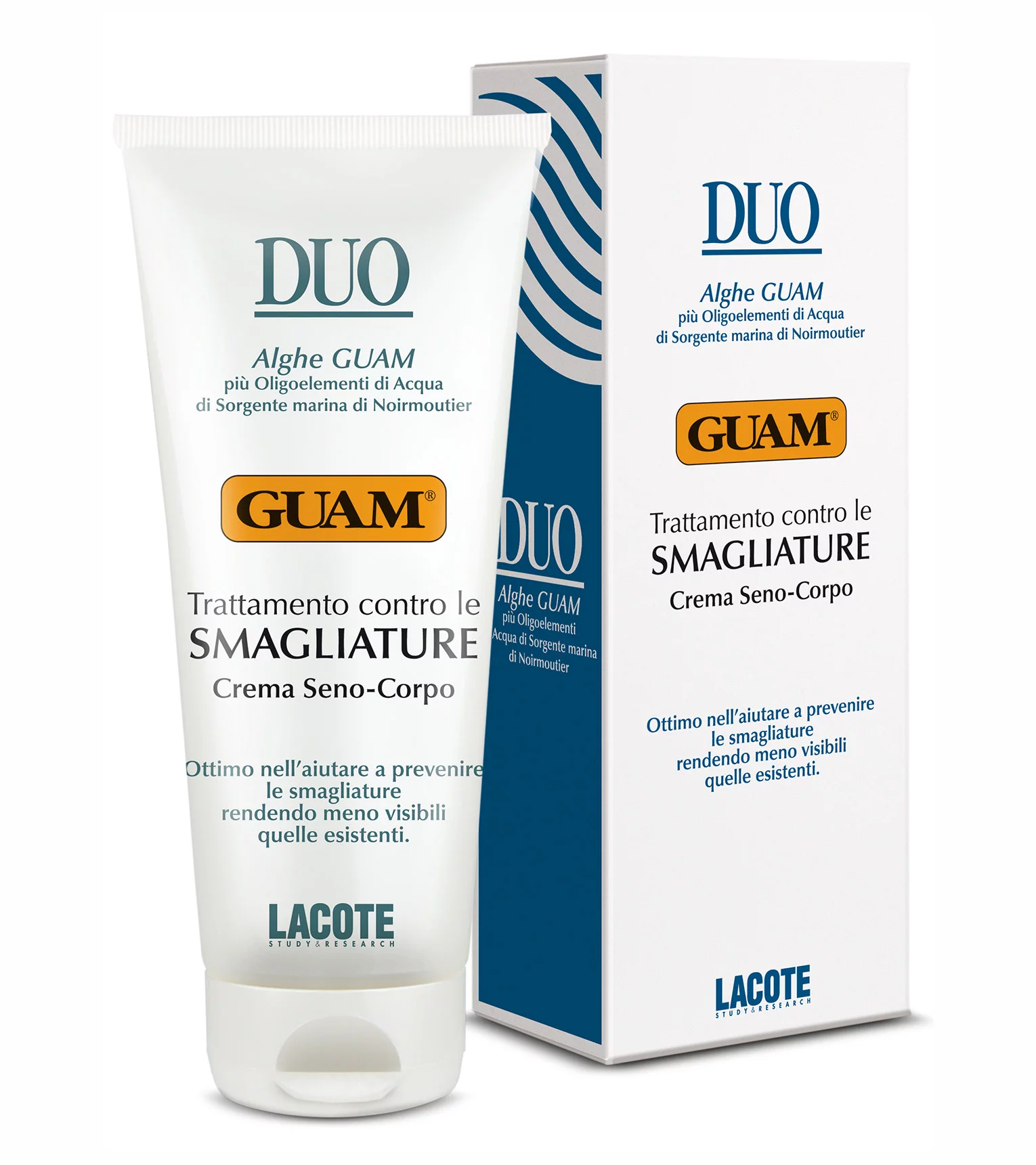 Крем від розтяжок для тіла і грудей сприяє запобіганню появі та зменшенню вже наявних розтяжок (стрій). Ефективно діє завдяки високій концентрації компонентів та інноваційній формулі – поєднанню водоростей GUAM, зеленої водорості хлорела та морської джерельної води джерела Noirmoutier (Нуармутьє). При використанні крему запускається механізм регенерації сполучної тканини, активізується синтез колагену та еластину.