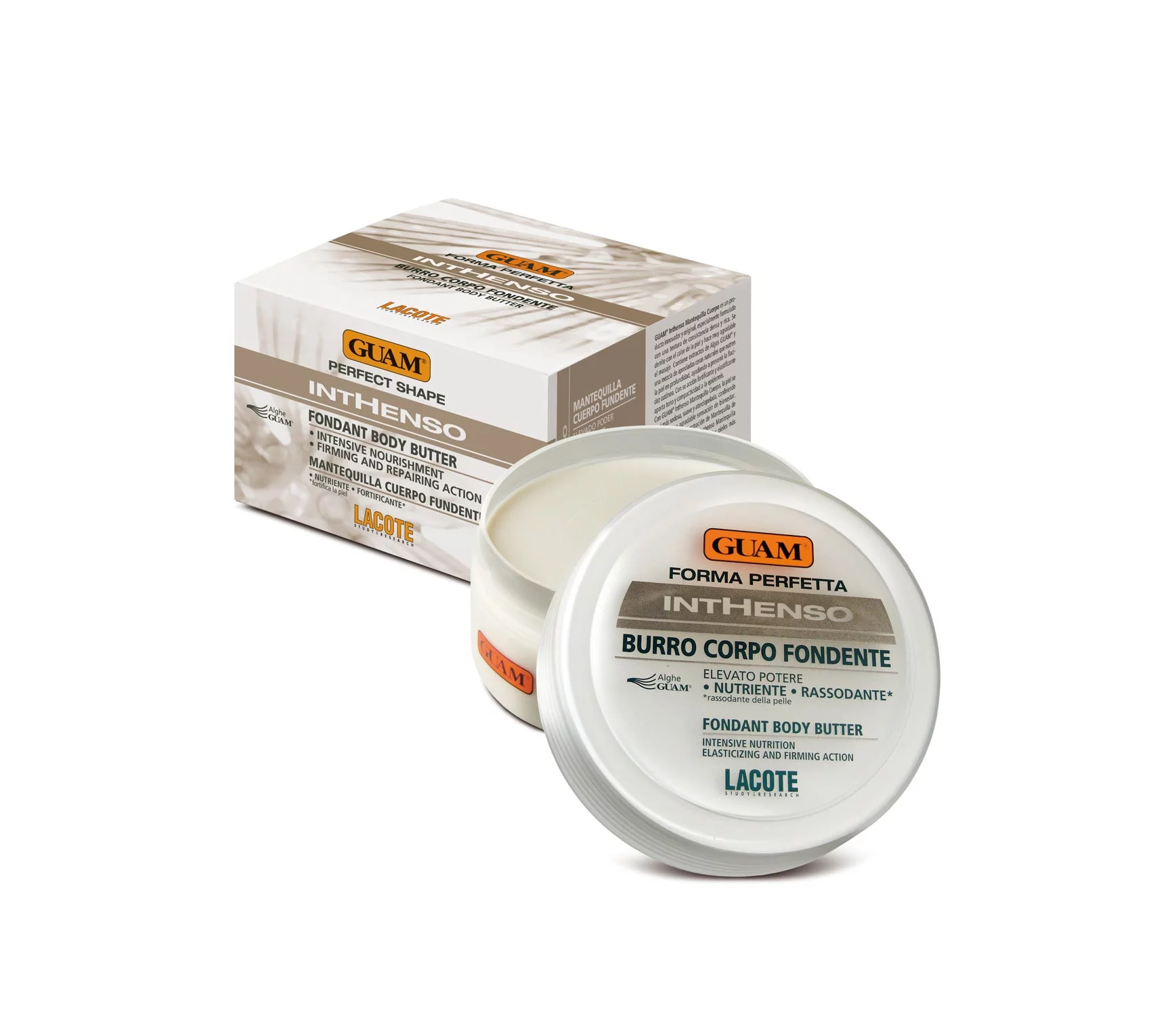 Активные ингредиенты: водоросли GUAM®, масло ши (карите), масло купуаса, растительный подтягивающий комплекс (репейник, манжетка альпийская, соя, хвощ, люцерна, редис), воск пчелиный и молочая, масло сладкого миндаля, лецитин, экстракт семян пшеницы..