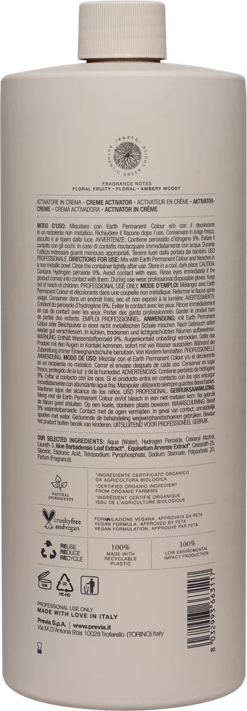 Проявитель для краски. В сочетании с красками для волос от Previa Earth помогает создать оттенки, которые идеально подходят для покрытия первых седых волос. Также для восстановления чувствительных или уже обработанных волос.