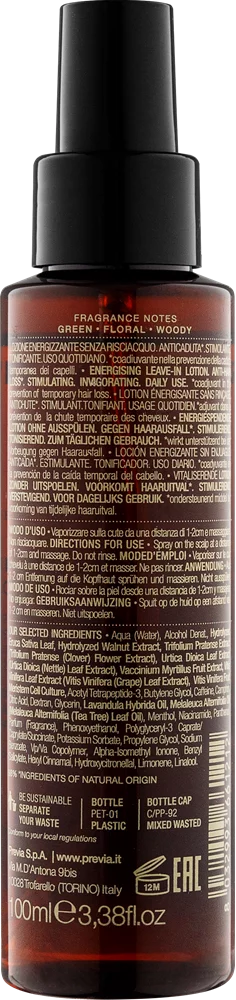 Natural Haircare Previa Extra Life Energising Leave-In Lotion. Несмываемый лосьон против выпадения волос. Предотвращает истончение волос, стимулирует микроциркуляцию кожи головы, укрепляет корни. Оказывает вяжущее и смягчающее действие. Повышает упругость кожи. 98% активных ингредиентов натурального происхождения и ингредиентов, полученных органическим земледелием.