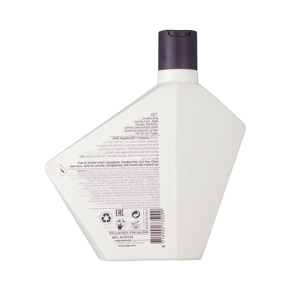 Применение L’Alga SEACURL Шампунь для вьющихся волос: Нанесите на влажные волосы и кожу головы, вспените и оставьте на 3-5 минут, затем тщательно смойте.