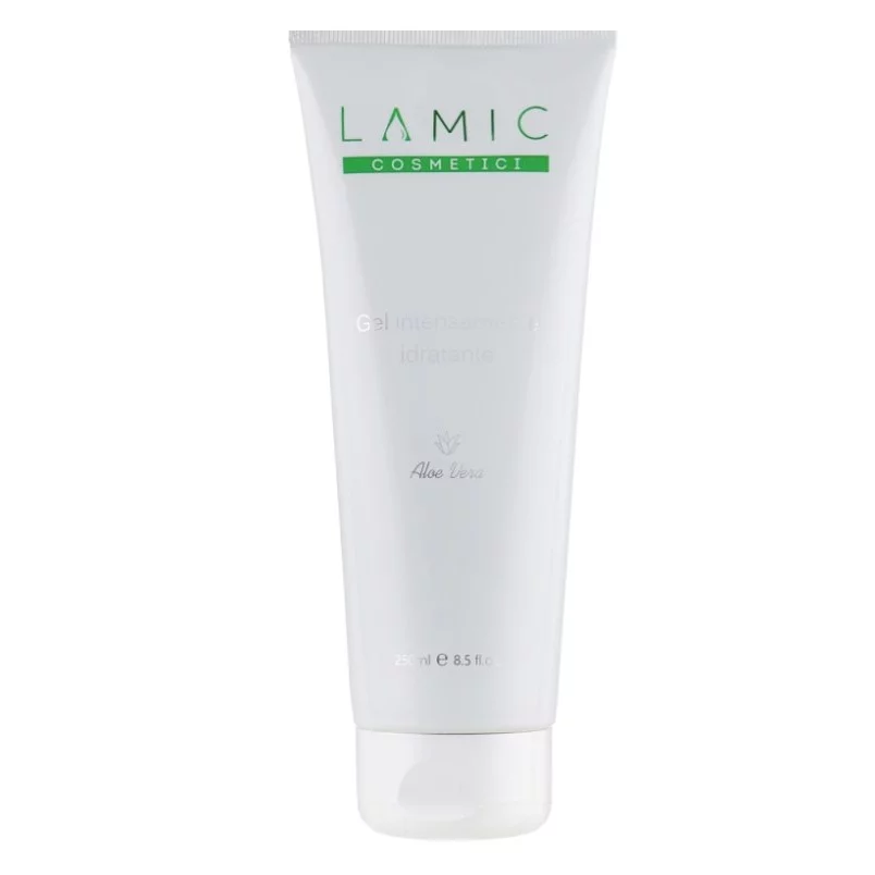 Зволожувальний гель «Lamic Gel intensamente idratante» з натуральним соком алое 98,7% для обличчя і тіла, пом’якшує шкірні покриви, зволожує, зупиняє запальні процеси, оновлює тургор сухої шкіри, стимулює обмінні процеси в шкірі.